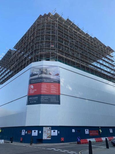 Hoardings are a way to secure a site where the perimeter is surrounded by scaffolding, providing a hard robust outer layer to provide protection to the project, operatives & the public. Hoardings often include a soffit for protection against falling objects and a fascia to cover up the scaffolding. All hoarding will come with a hoarding certificate and a design and will built to our clients specification.